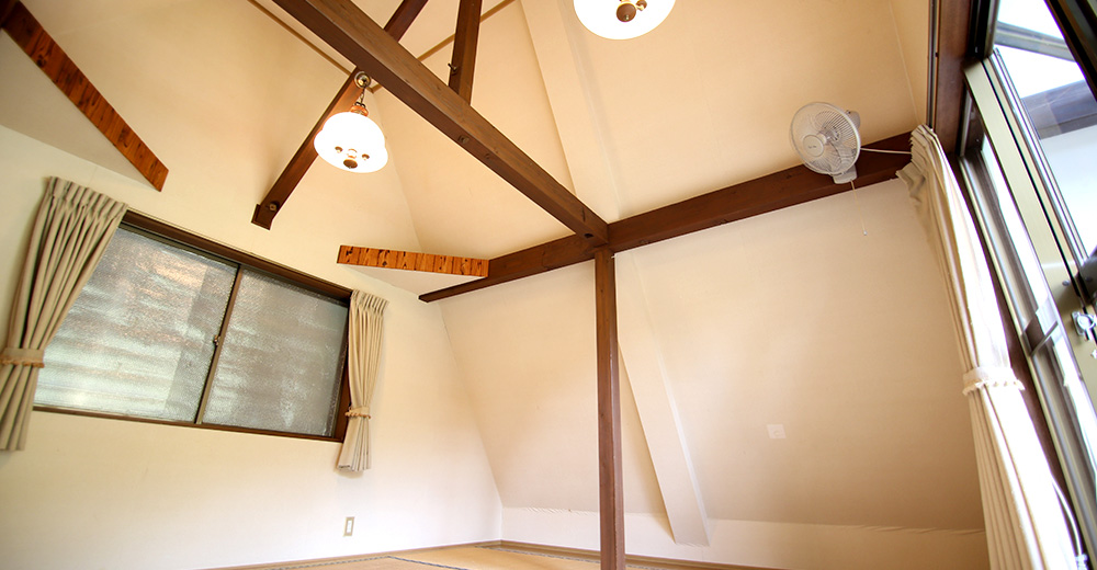 C棟三角屋根の2階建て2部屋コテージ/4~8名