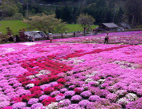 ゴールデンウィークの頃は國田家の芝桜をはじめ、花桃も盛りを迎え、明宝地域全体がピンクの濃淡に染まります。